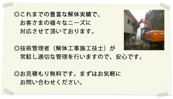 解体工事を通して地域の皆様のお役にたてるよう、これからも スタッフ一同取り組んでいきます。